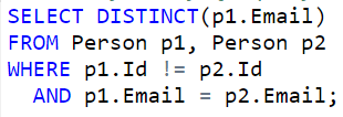 Person(Id, Email) 테이블에서 2개 이상 중복되는 메일 주소를 모두 출력시키시오.