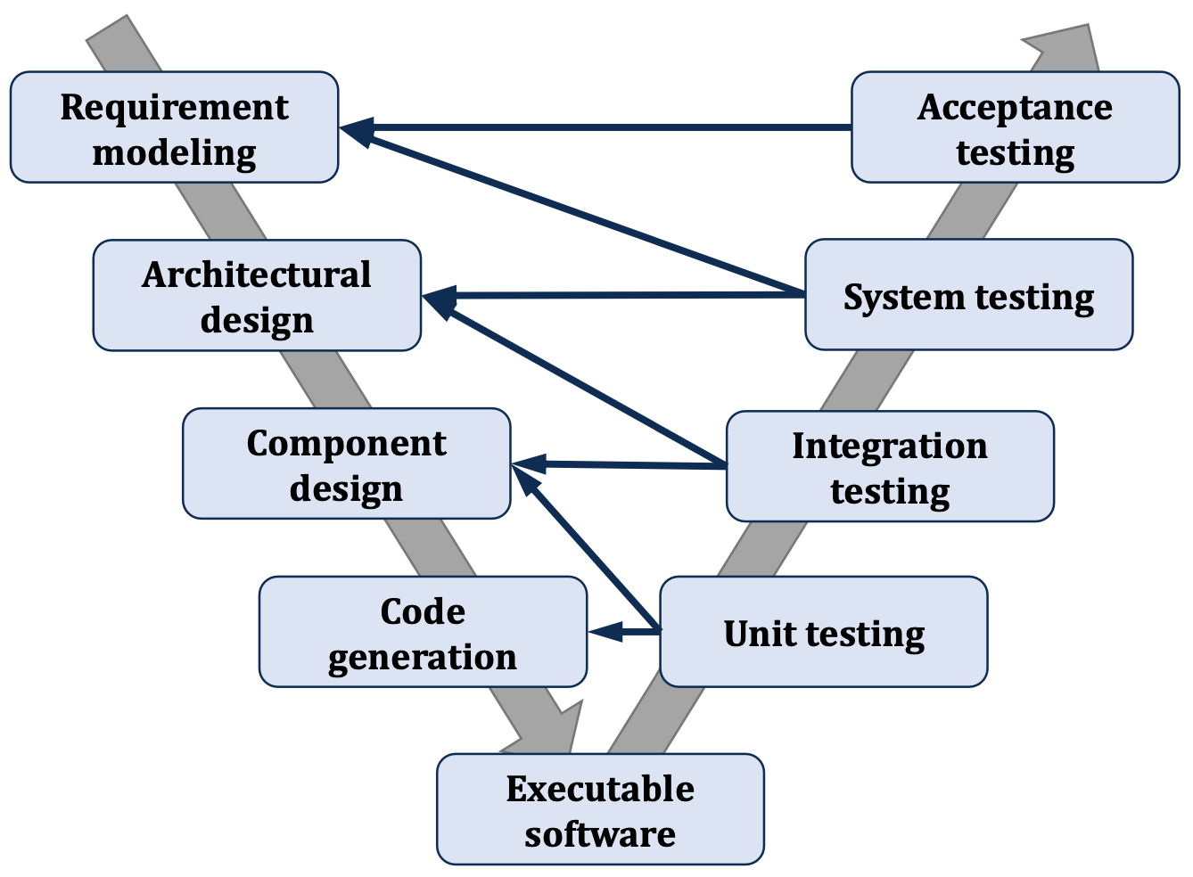 - 코딩 단계에서 위쪽으로 꺾여서 알파벳 V자 모양으로 진행되는 방식입니다.