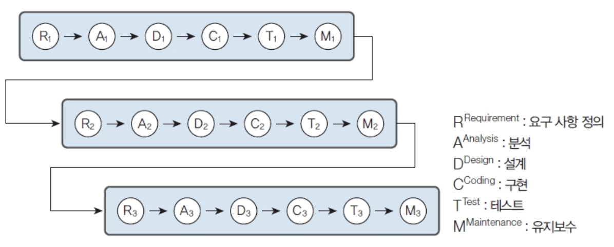 - 개발 절차를 나열한 뒤 조금씩 돌아가면서 진행하는 방식입니다.