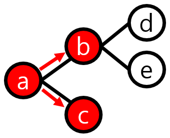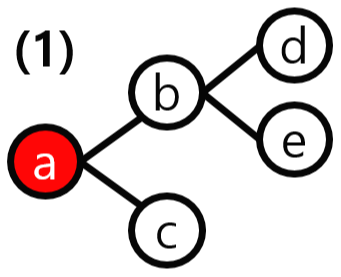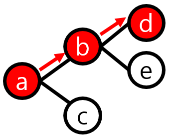 (1) DFS의 구체적인 동작 원리는 아래와 같습니다. 막힐 때까지 계속 나아가는 모습을 볼 수 있습니다. 접근 순서는 (a)-(b)-(d)-(e)-(c) 입니다.