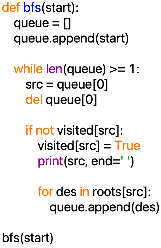 (2) BFS의 구체적인 동작 원리는 아래와 같습니다. 주위를 둘러보는 모습을 볼 수 있습니다. 접근 순서는 (a)-(b)-(c)-(d)-(e) 입니다.
