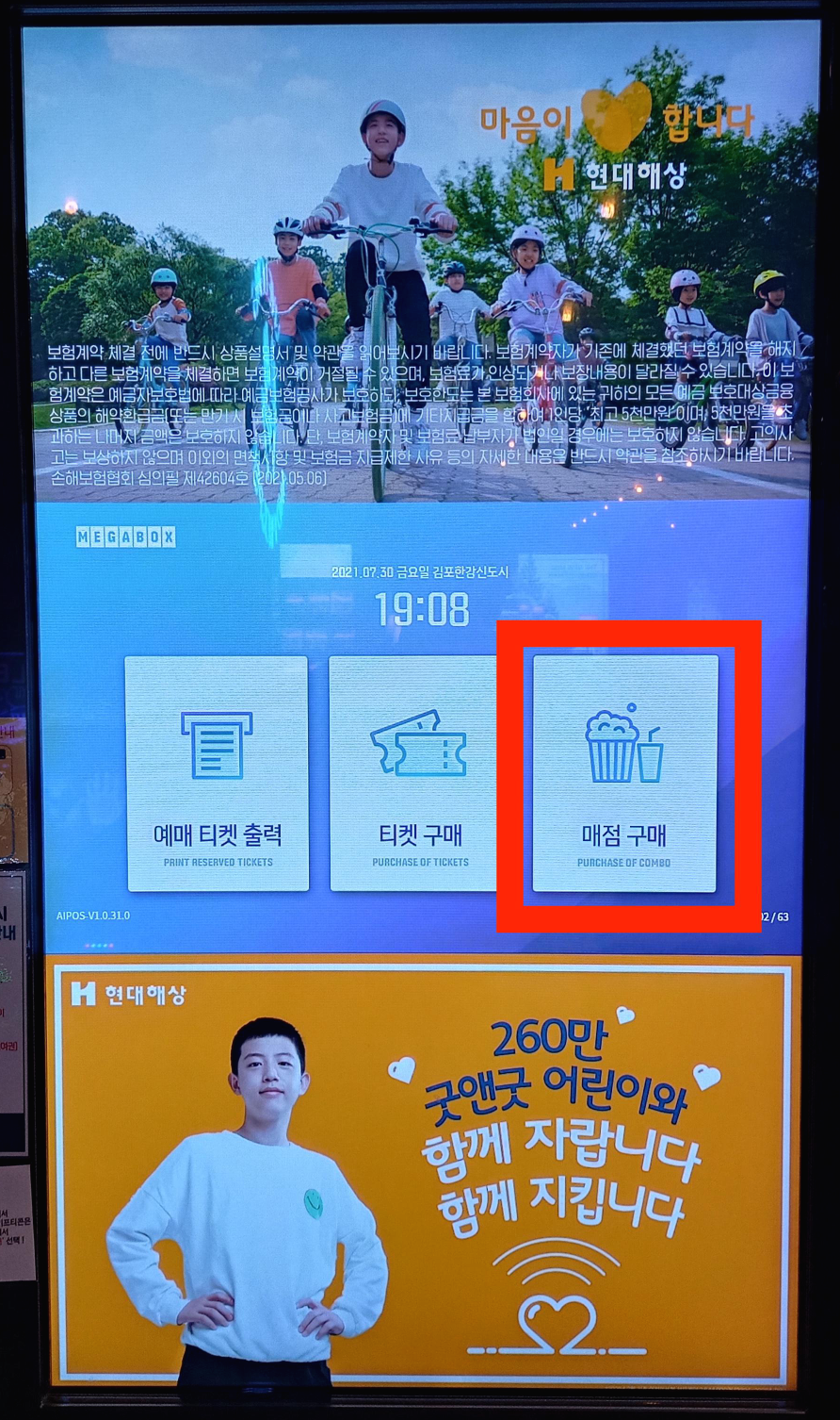 이번 시간에는 메가박스에서 팝콘을 포함한 음식을 주문하는 방법을 살펴보겠습니다. 직원한테 말해서 주문할 수도 있지만 여기서는 발권기를 사용해보겠습니다. 그리고 현재 코로나 사태로 인해서 발권기로 주문 하는 것이 원칙이 되었습니다 ㅠㅠ 따라서 발권기로 주문하는 방법도 알아둘 필요가 있습니다.