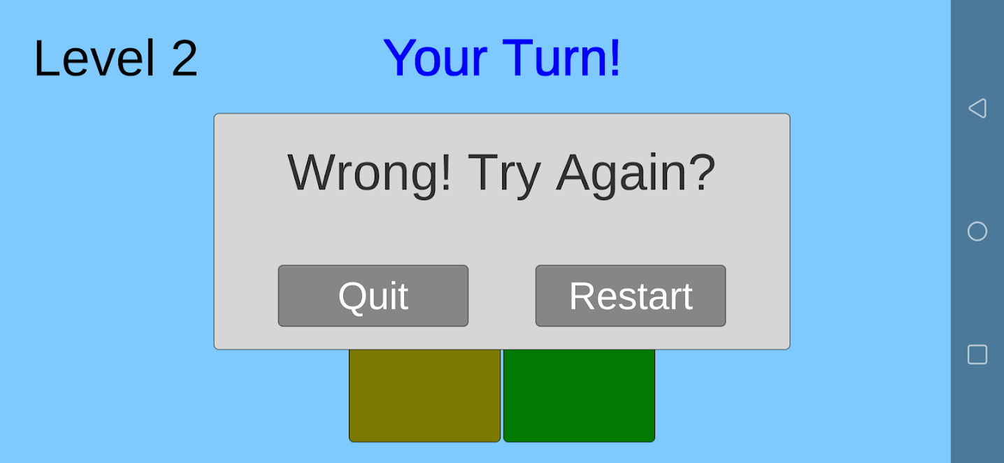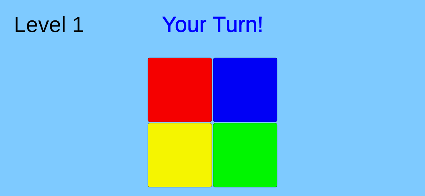 나오는 색깔을 차례대로 기억해 나가는 게임입니다. 하나라도 틀리면 게임이 종료됩니다.