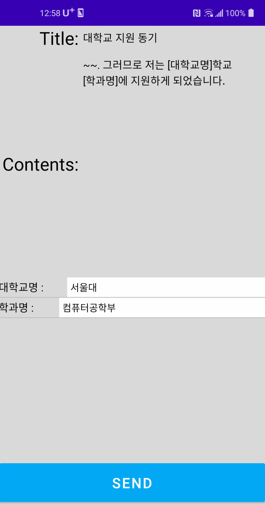 자소서 관리 프로그램입니다. 자소서 내용에 빈 칸을 넣은 상태에서 내보낼 때 빈 칸을 채워서 내보낼 수 있습니다. 따라서 여러 회사에 지원하는 구직자 입장에서는 굉장히 편리할 것입니다. 그리고 취업 자기소개서 뿐만 아니라 대학원 학업계획서, 대외활동 지원서 등에도 유용하게 쓰일 것입니다.