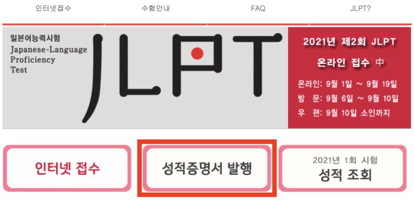 이번 시간에는 JLPT 성적증명서를 다시 발급하는 방법을 살펴보겠습니다. 진행하기 전에, 전산화가 안 되어 있는 일본의 특성상 JLPT 성적표는 오로지 우편으로만 받을 수 있으므로 (온라인 출력 불가) 며칠 걸립니다 ㅠㅠ 따라서 미리 신청하지 않으면 기한 안에 성적표를 제출 못해서 무효 처리 되는 일이 생깁니다. 따라서 어딘가에 제출해야 한다면 미리 신청합시다 ㅋㅋ