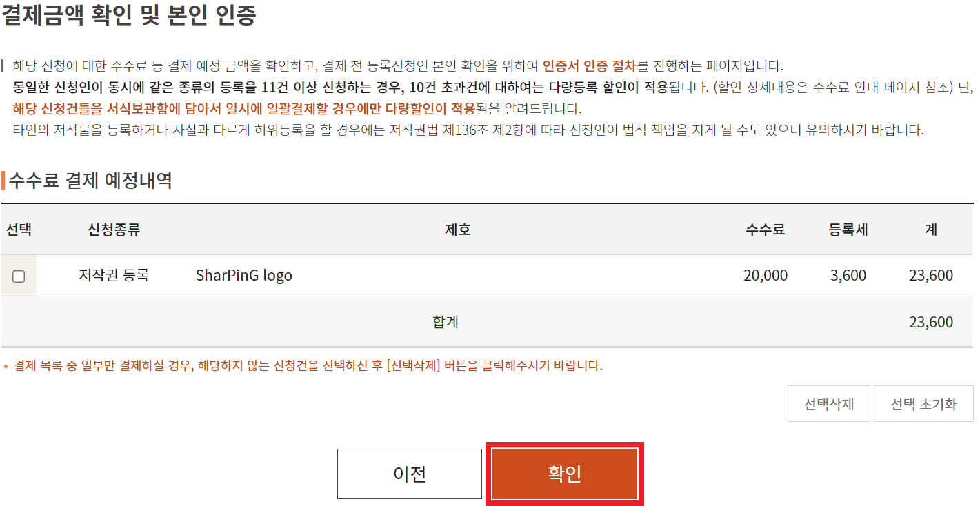 진행하기 전에, 약 30,000~100,000원의 수수료가 부과되니 유의하기 바랍니다. 저는 이미지를 등록할 것이므로 약 30,000원의 수수료가 필요합니다. 단, 글자만 있는 이미지는 저작권 등록이 안 되므로 참고 바랍니다.