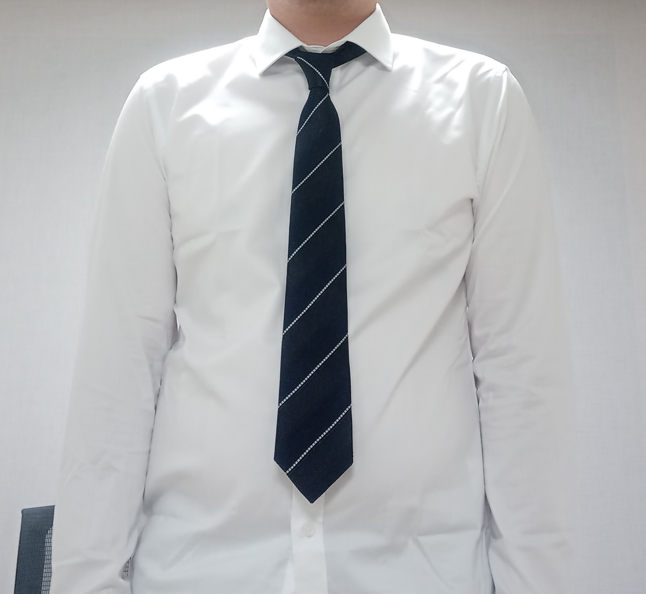 넥타이가 제대로 착용된 것을 볼 수 있습니다! 이제 다시 풀러보겠습니다.