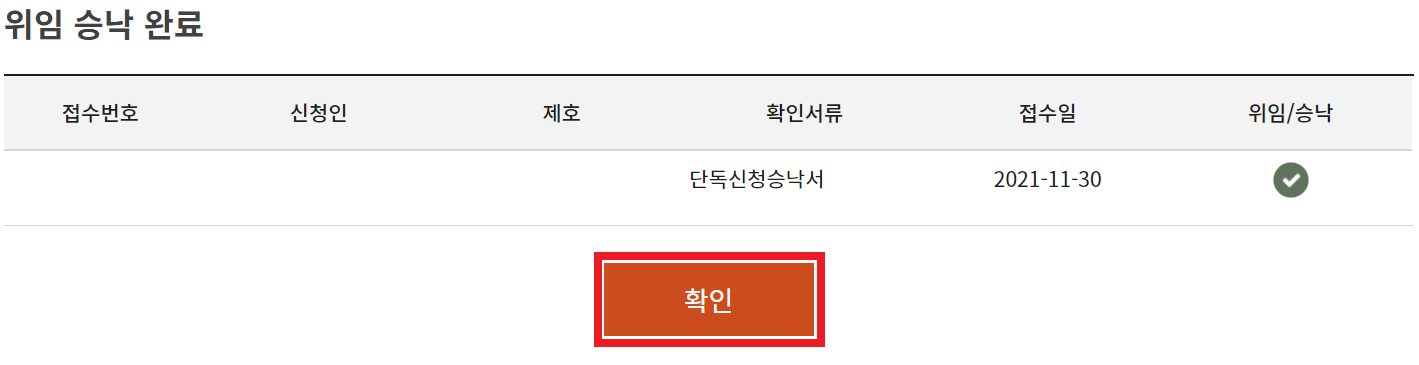 '위임/승낙'에 체크 표시가 뜨면 거의 다 된 것입니다. 이제 주민등록증 사본을 요청자한테 보내면 되고, 요청자는 주민등록증 사본을 모두 올리면 됩니다.