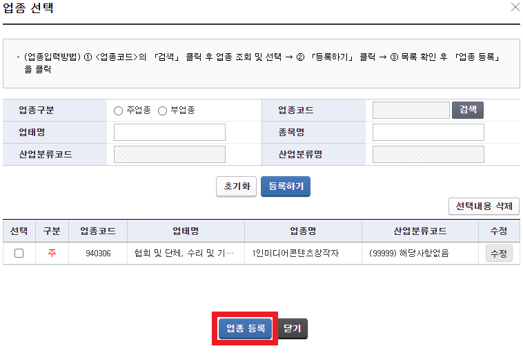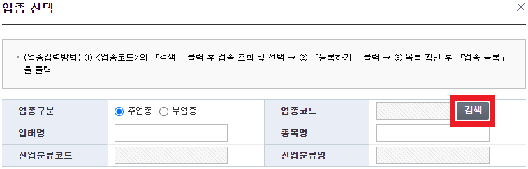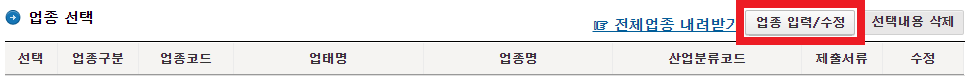 '업종 입력/수정'을 클릭합니다.