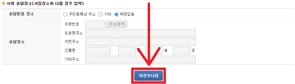 밑으로 내려가서 '저장후다음'을 클릭합니다.