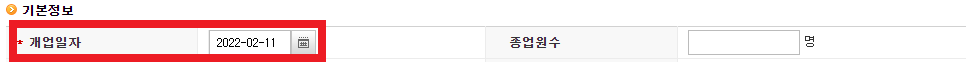 저처럼 사업 소재지를 따로 두지 않았다면, 개업일자에 오늘 날짜를 입력합니다.