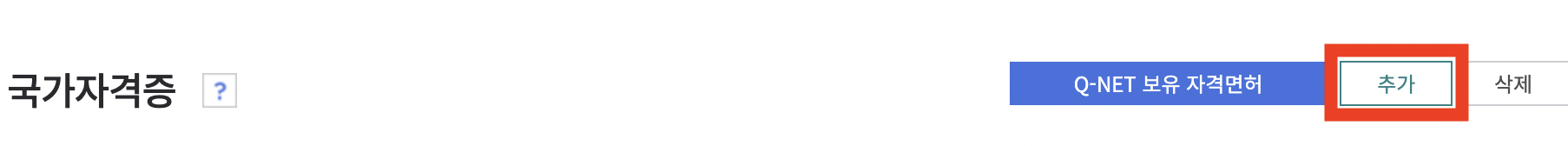 밑으로 내려가서 국가자격증에서 추가를 클릭합니다. 참고로, 저는 정보처리기사를 보유하고 있습니다.
