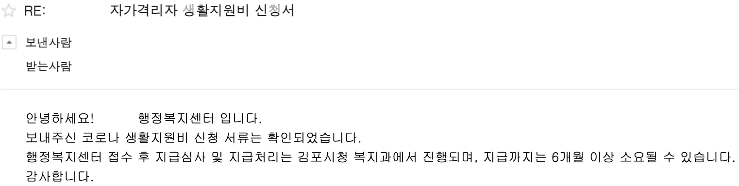 위와 같이 보냈더니 잘 처리되었다는 답장이 왔다고 합니다. 실제 지원금을 받으려면 6개월 이상은 기다려야 할 것 같네요 ㅋㅋㅋ;;