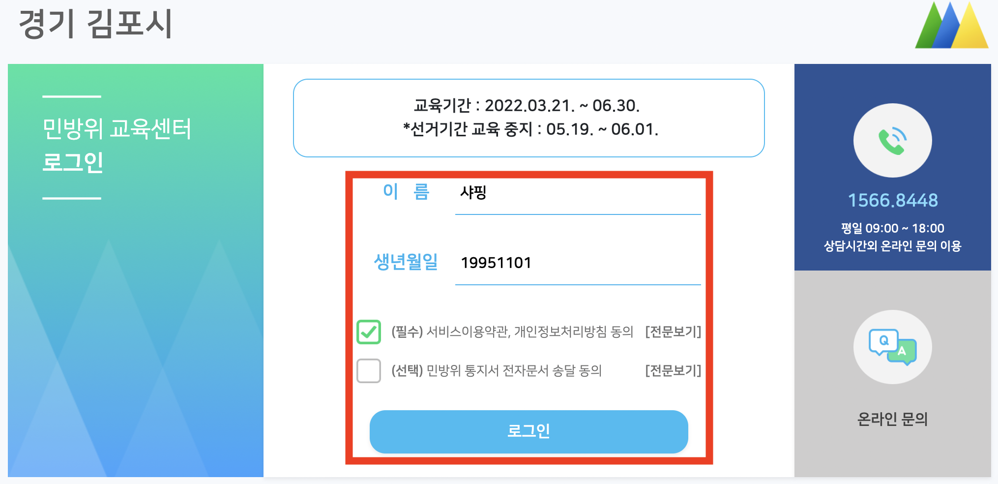 이름과 생년월일을 입력합니다.