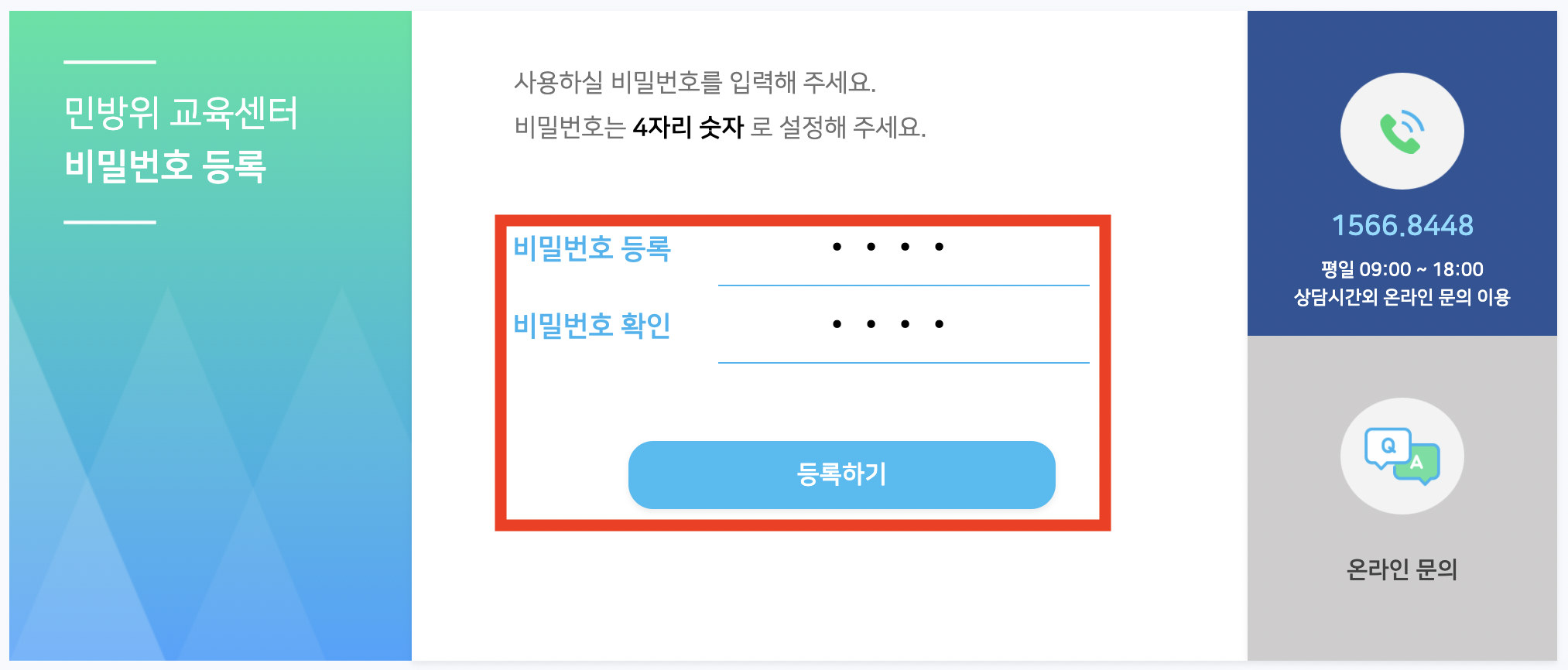로그인 하기 위한 비밀번호 4자리를 입력합니다.