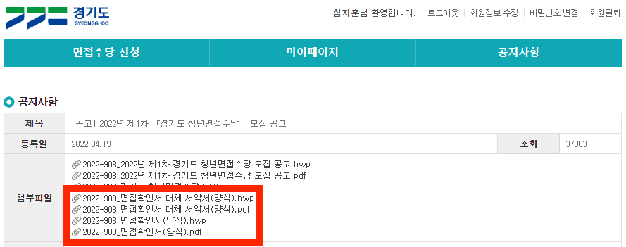 아래의 링크로 들어가서 면접확인서 or 면접확인 대체서약서를 다운 받습니다.