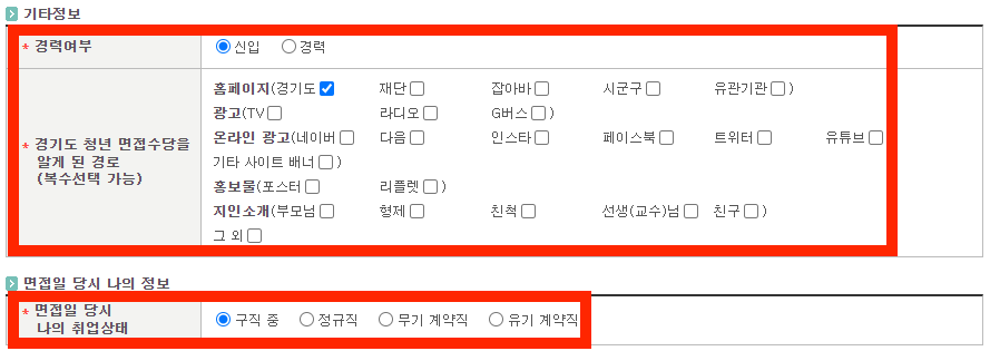 기타정보와 면접일 당시 나의 정보를 모두 입력합니다.