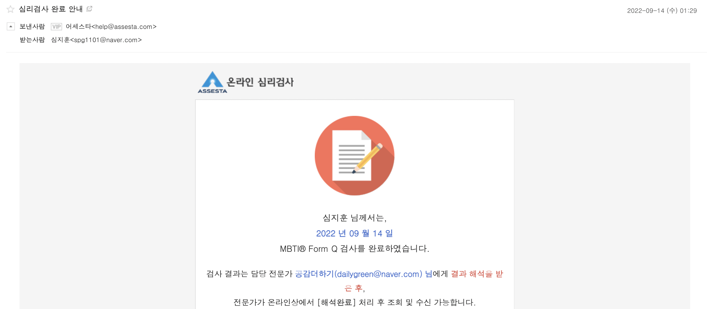 이렇게 결과 보고서가 옵니다 ㅋㅋ 저는 INTJ 이네요~