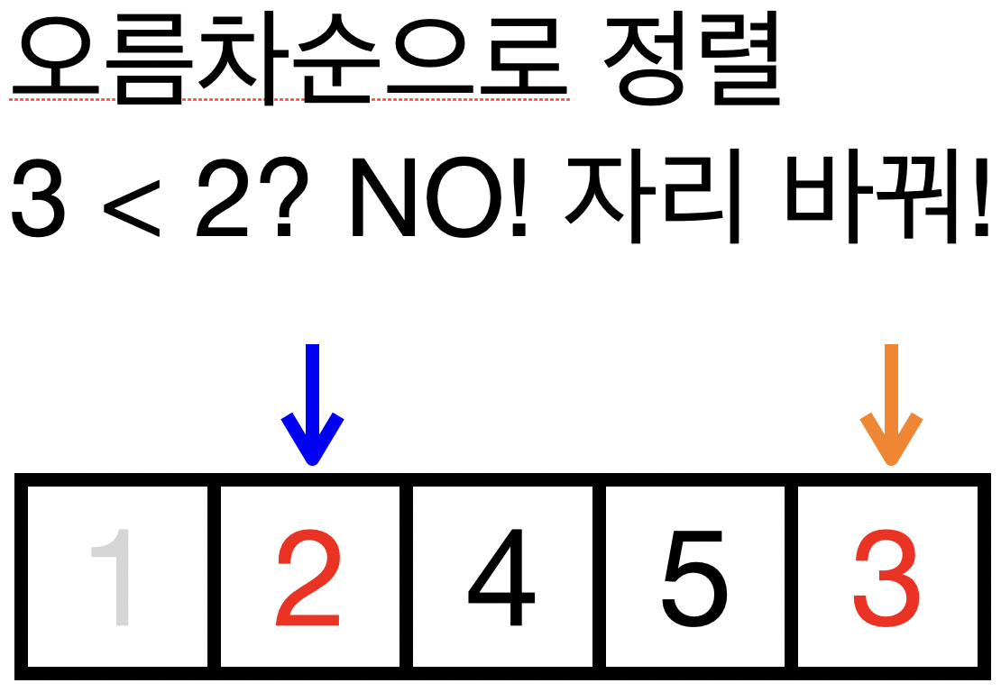 왼쪽 값이 더 크므로 서로 맞바꿉니다.