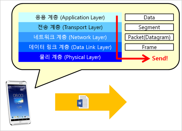 본격적으로, 위에서 언급한 각 계층의 역할을 가지고 구체적인 전송 원리를 살펴보겠습니다.