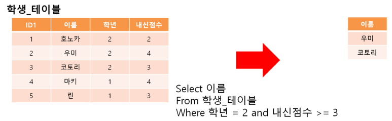 - 관계 대수의 '셀렉션(σ)'을 떠올리시면 됩니다.