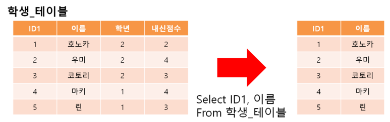 - 관계 대수의 '프로젝션(π)'을 떠올리시면 됩니다.