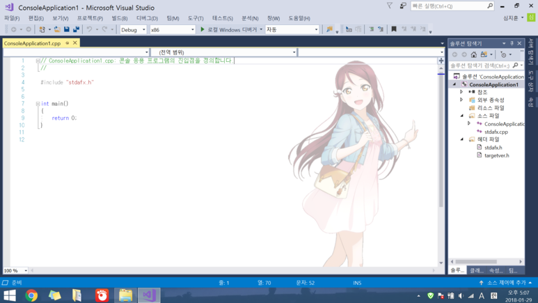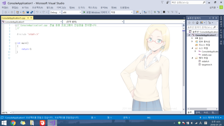 cpp 파일을 오픈하면 정체모를(??) 여캐릭터의 이미지가 뜨지요? ㅋㅋㅋ