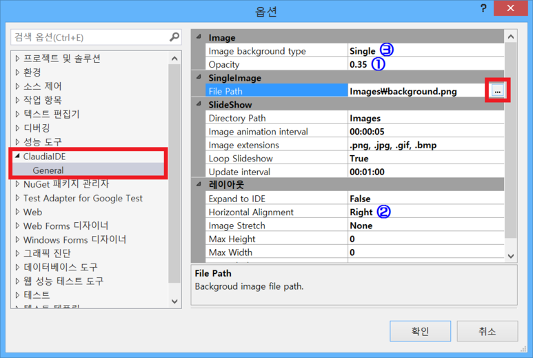 좌측에서 ClaudiaIDE를 찾아 클릭한 후, 우측에서 'File Path' 부분을 수정합니다.