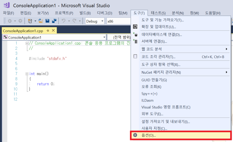 [Visual C++]-[Windows 콘솔 응용 프로그램] 을 클릭해 프로젝트를 하나 만들어줍니다.