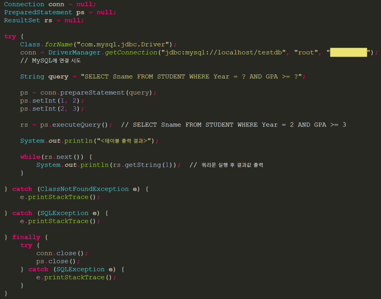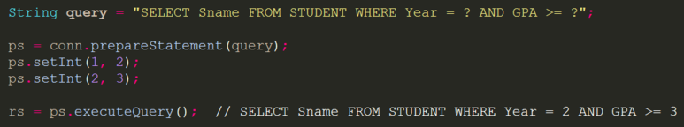 살펴본 바와 같이 명령문을 해석하면, 1번째 ?를 정수값 2로 대체하는 것이 되겠습니다.