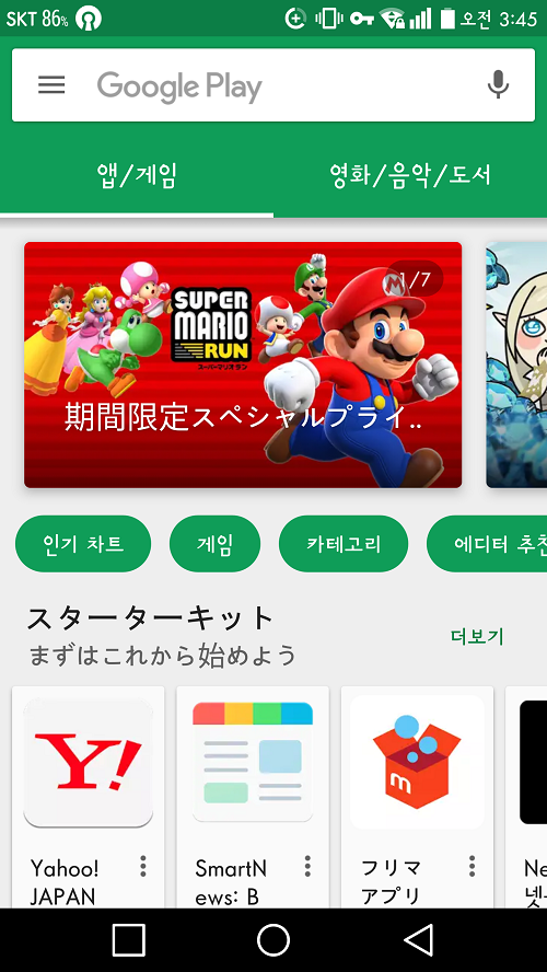 로그인을 한 후에 위의 사진처럼 일본어가 뜬다면 정상입니다. 이제 다 한 거에요 ㅋㅋ VPN에 계속 접속하면 속도가 저하되므로 VPN 우회를 해제해줍니다. 자, 이제 일본 게임 키라라판타지아도 다운로드가 될까요? 검색창에 kirara 라고 쳐보겠습니다. (일본어를 일일히 치기는 귀찮으므로 ㅋㅋㅋ;;)