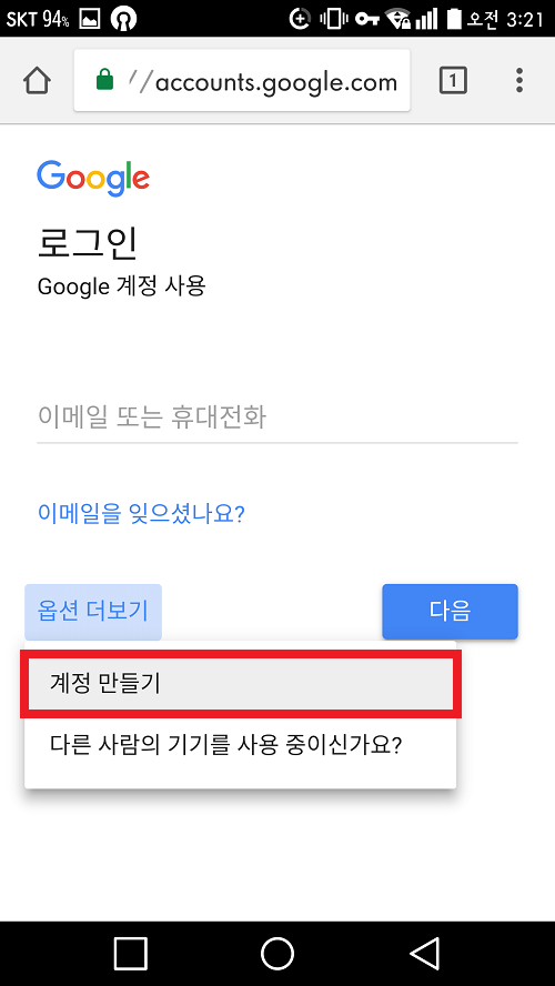 [옵션 더보기] - [계정 만들기] 버튼을 클릭합니다.