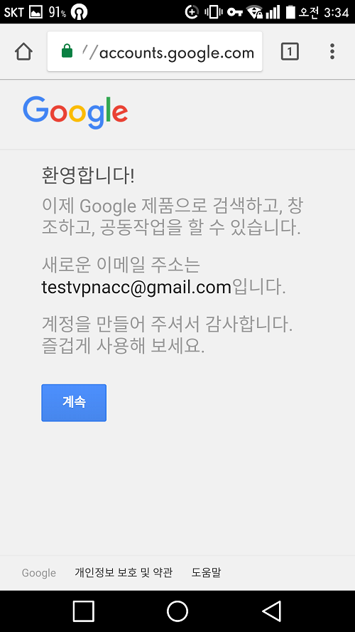 제가 예전에 구글계정 만들었을 때는 인증 절차를 분명히 거쳤었거든요. 그런데 사람들의 의견을 듣고보니 최근에는 인증 절차가 없어진 것 같습니다. 따라서 인증 절차 없이 바로 가입이 되었다 해도 크게 문제는 없을 것 같습니다.