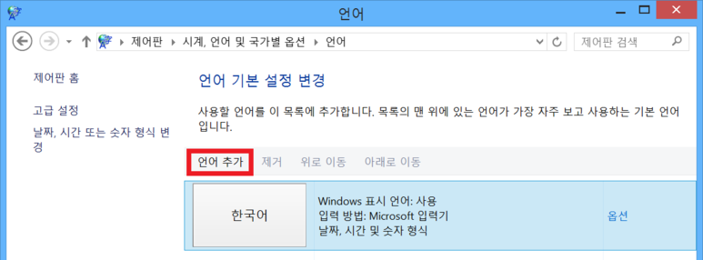 상단의 '언어 추가' 버튼을 클릭합니다.