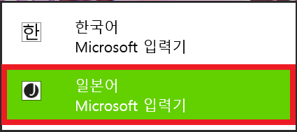 윈도우키 + 스페이스바 를 누르면 언어 전환을 할 수 있습니다. 윈도우키를 누른 상태에서 스페이스바를 누르면 전환이 가능하다는 뜻입니다. 현재 등록된 언어는 한국어와 일본어 이므로 '한국어 - 일본어' 간 전환이 가능합니다. 한국어에서 일본어로 전환해줍니다.