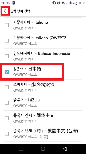 밑으로 내려가서 '일본어'를 찾아 체크한 후 뒤로 돌아갑니다.