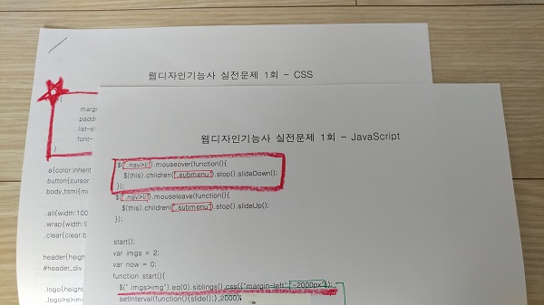 물론 웹디자인기능사는 문제를 많이 푸는 것 보다 1,2문제를 몇 번이고 반복해서 연습하는게 훨씬 효율적입니다. 하지만 문제가 항상 똑같이 나오지는 않기 때문에 시간이 된다면 다른 문제를 풀면서 기존에 연습했던 내용을 새로 적용해보는 것이 좋습니다. 그리고 구현하지 못한 부분이 있다면 답안지를 보고 새로 배워나가세요.