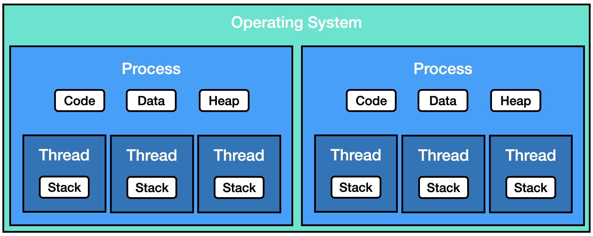 - 하나의 프로세스는 여러 개의 스레드를 보유할 수 있습니다.